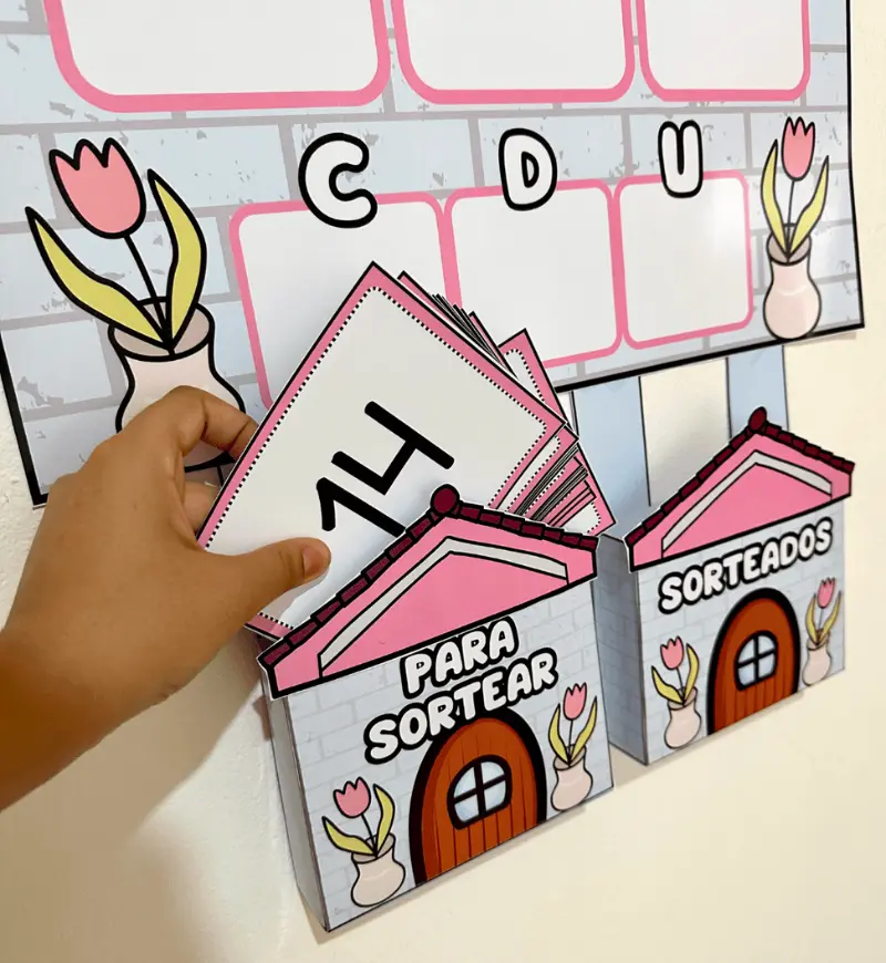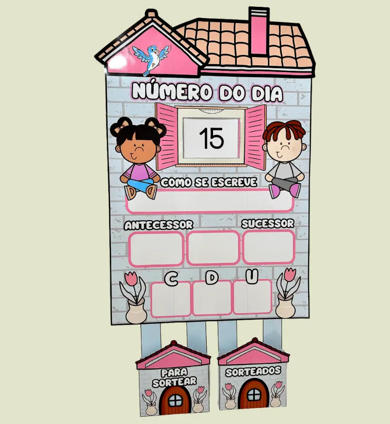 - Vai com bolsinhos para organizar as fichas e envelope para encaixar a ficha do número do dia.