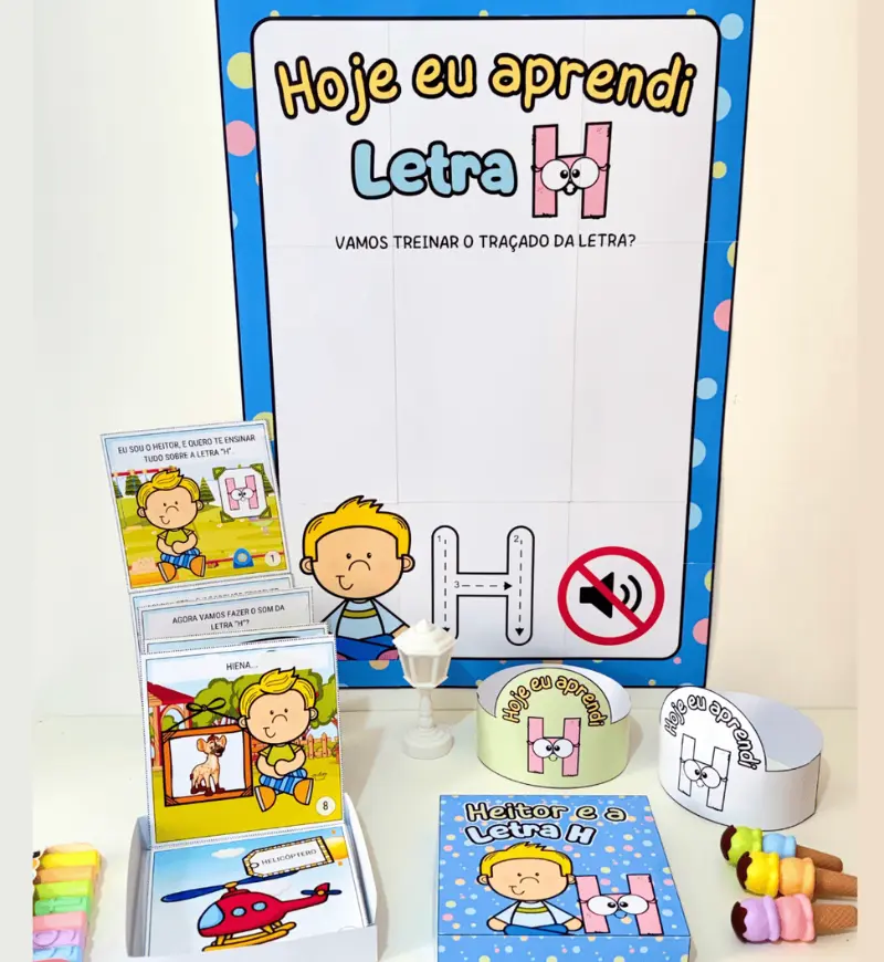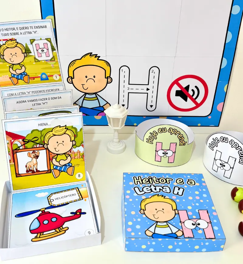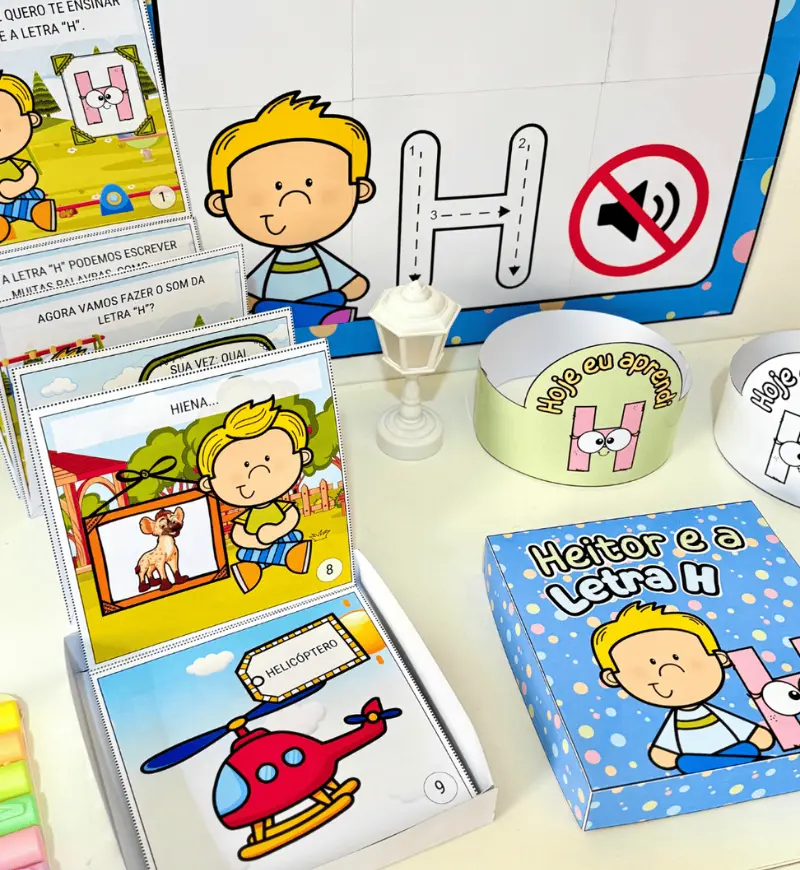 - Kit História na Caixa e Cartaz Letra “H” para trabalhar o conteúdo com crianças da Educação Infantil e séries iniciais do Ensino Fundamental.