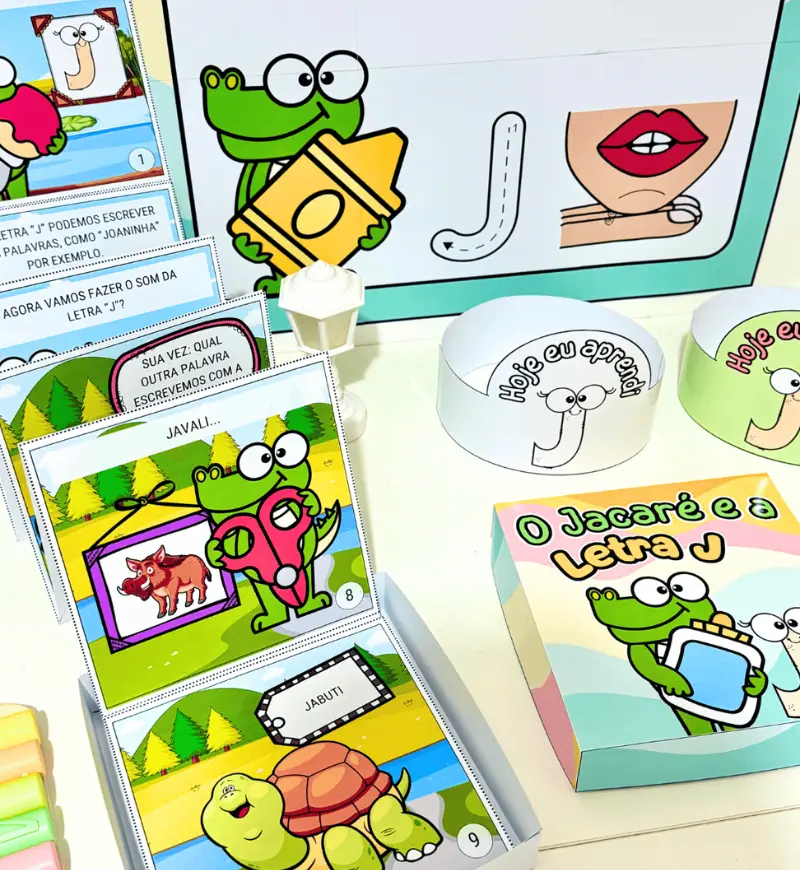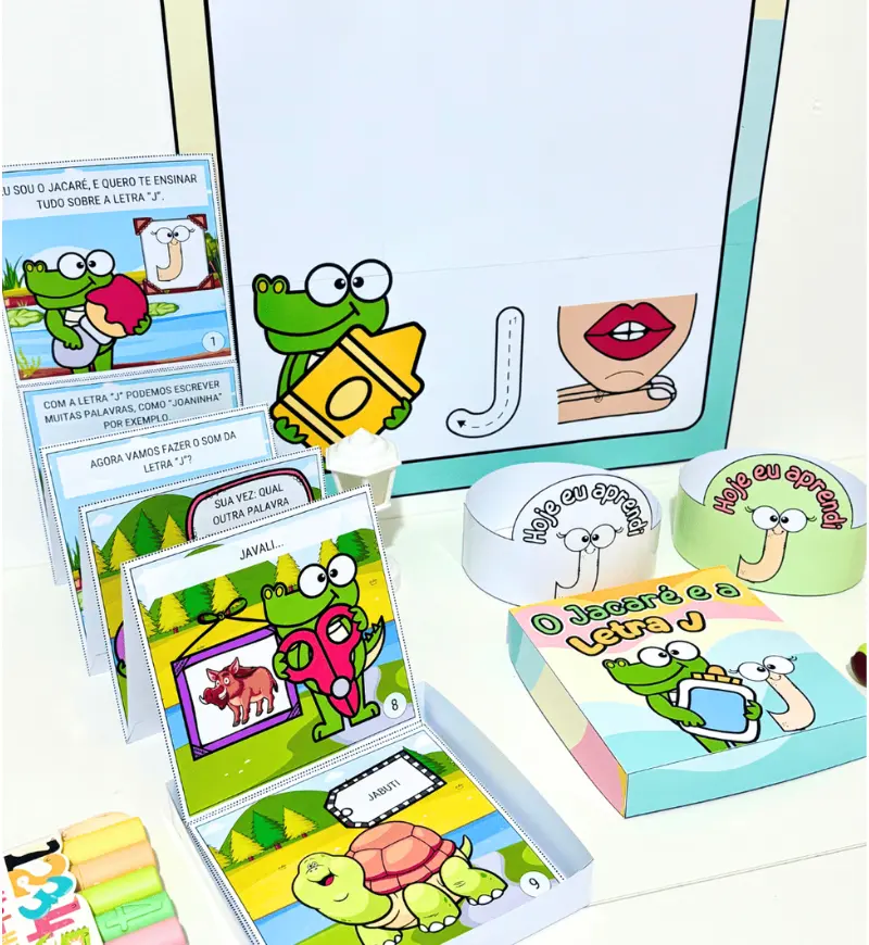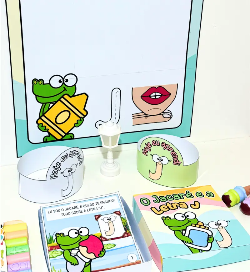 - História na Caixa: “O Jacaré e a Letra J” (9cm de largura x 9cm de comprimento x 3,5cm de altura.)