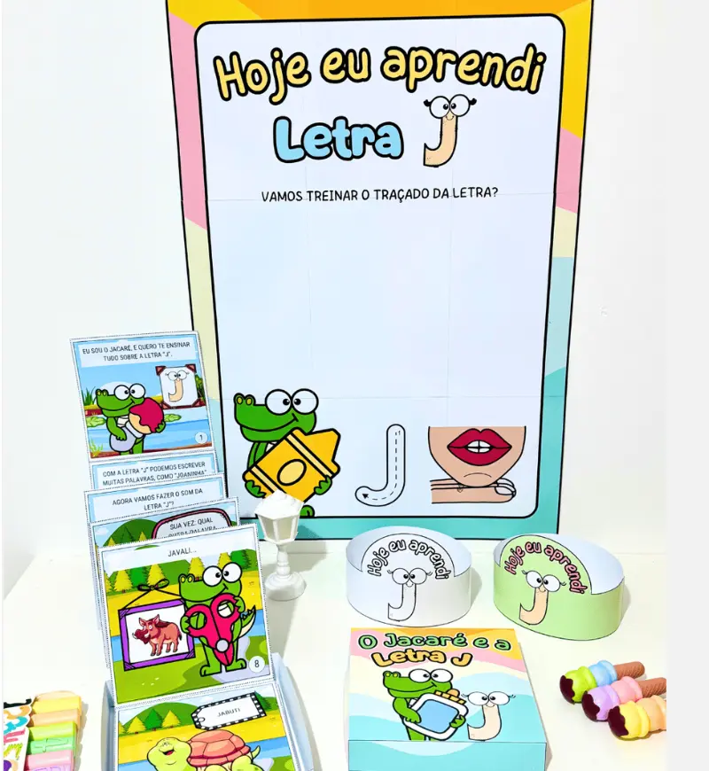 - Kit História na Caixa e Cartaz Letra “J” para trabalhar o conteúdo com crianças da Educação Infantil e séries iniciais do Ensino Fundamental.